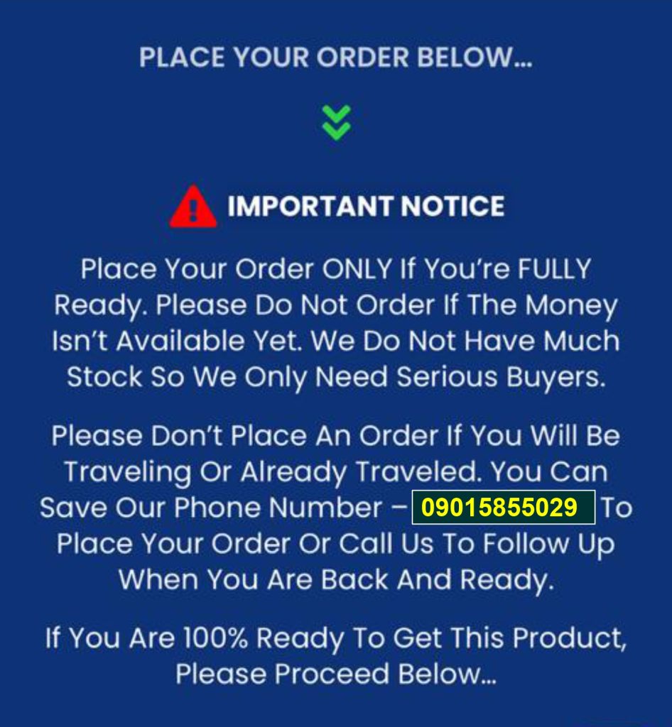 PLEAS ENSURE YOU ARE READY TO BUY BEFORE YOU PLACE ORDER BELOW
